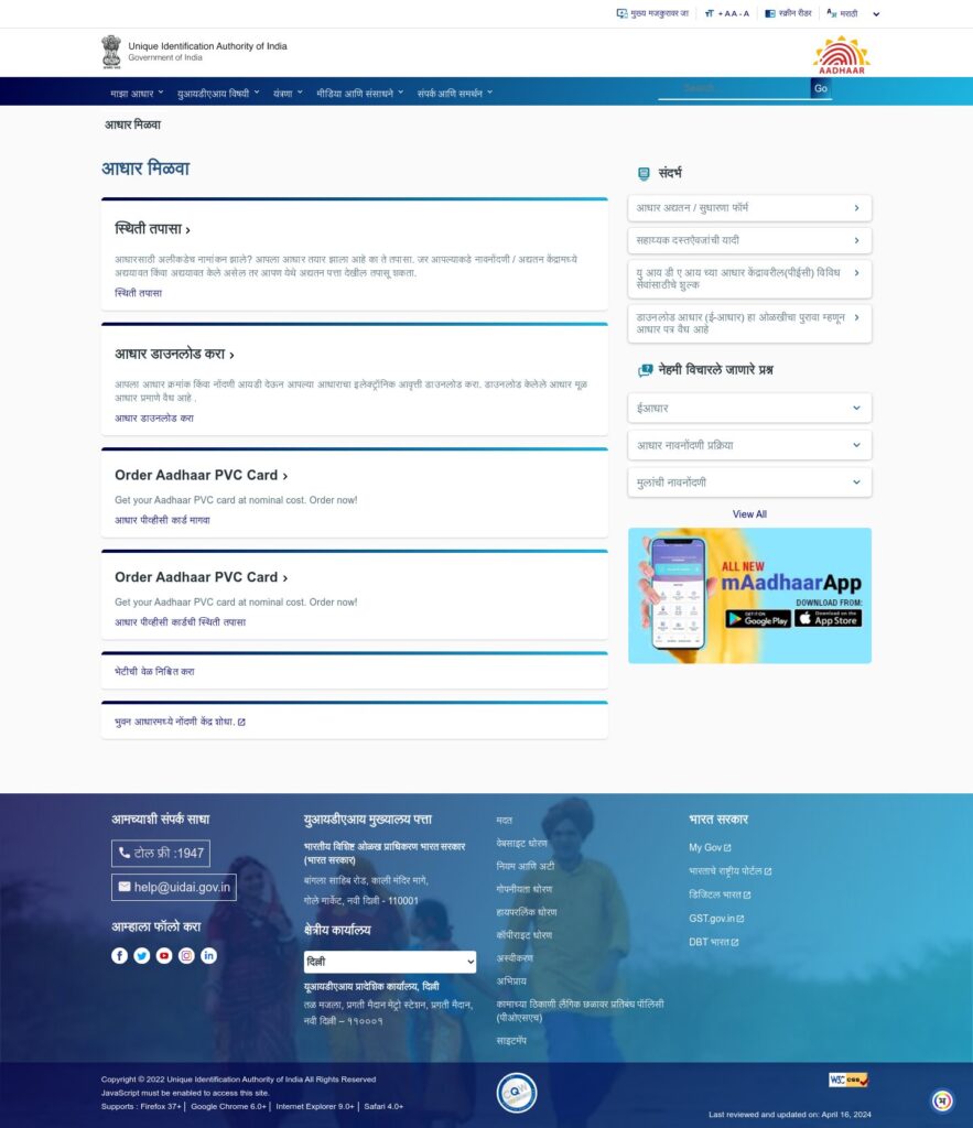 - आधाराशी संबंधित किंवा सहाय्यासाठी UIDAI हेल्पलाईनवर संपर्क साधा.
